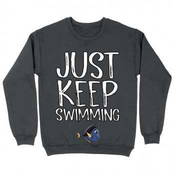 Just Keep Swimming Sweatshirt – Cute Fish Crewneck Sweatshirt – Cartoon Sweatshirt