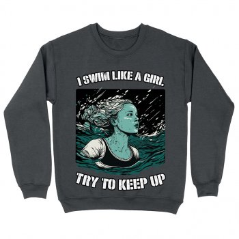 I Swim Like a Girl Try to Keep Up Sweatshirt – Retro Crewneck Sweatshirt – Quotes Sweatshirt