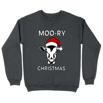 Moory Christmas Sweatshirt – Cute Cow Print Crewneck Sweatshirt – Quote Design Sweatshirt
