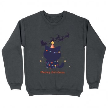 Meowy Christmas Sweatshirt – Black Cat Crewneck Sweatshirt – Cute Cat Sweatshirt