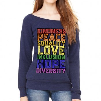 Peace Love Equality Wide Neck Sweatshirt – Queer Women’s Sweatshirt – LGBTQIA Sweatshirt