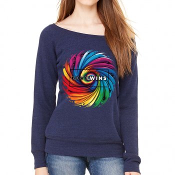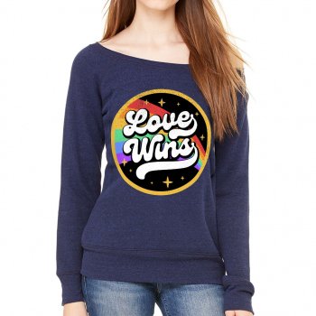 Love Wins Wide Neck Sweatshirt – Rainbow Women’s Sweatshirt – Graphic Design Sweatshirt