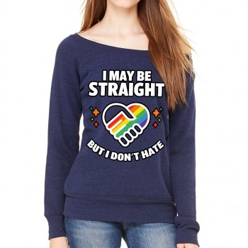 I May Be Straight but I Don’t Hate Wide Neck Sweatshirt – Quotes Women’s Sweatshirt – Printed Sweatshirt