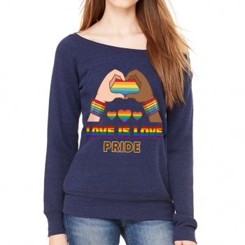 Love Is Love Pride Wide Neck Sweatshirt – Pride Heart Women’s Sweatshirt – Equality Sweatshirt