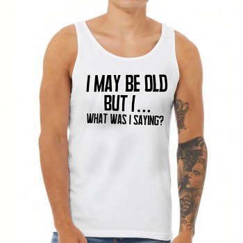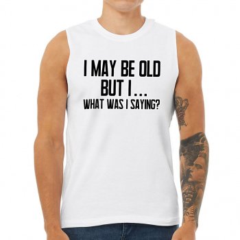 I May Be Old Men’s Muscle Tank – What Was I Saying Men’s Sleeveless T-Shirt – Quotes Printed Tank