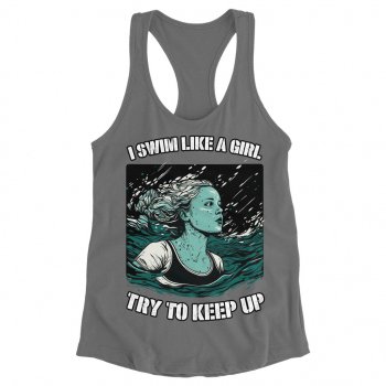 I Swim Like a Girl Try to Keep Up Racerback Tank – Retro Tank – Quotes Workout Tank