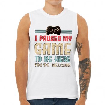 I Paused My Game to Be Here Men’s Muscle Tank – Sarcasm Men’s Sleeveless T-Shirt – Printed Tank